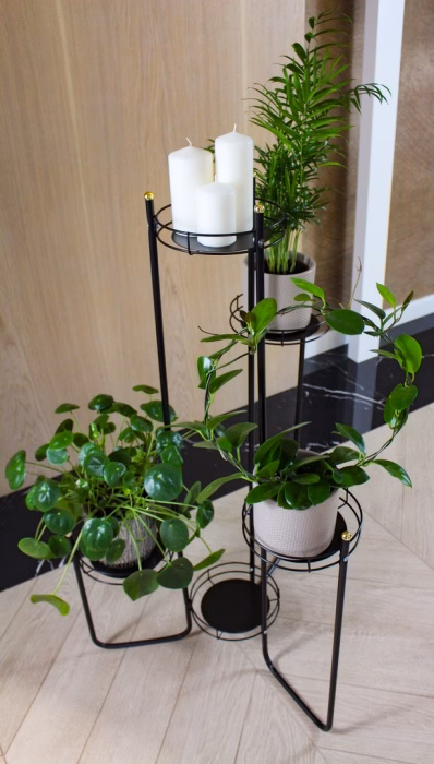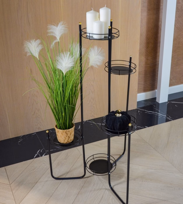 Interiérové dekorace / Květináče / Květináče trubkové - Klasický kroucený záhon pro 5 květináčů Stojan, který dává prostor několika rostlinám v květináči? Je to skvělé řešení! Jeden metr vysoký stojan s prostorem pro pět květináčů má minimalistický nadčasový vzhled, díky kterému si najde místo v každém interiéru. Vyrobeno z kovu- zajistí trvanlivost a umožní vám dlouho si užívat květiny v květináčích. Stojan pro pět květináčů Stojan je vysoký něco přes metr a celá konstrukce je vyrobena z kovu, doplněná plastovými podšálky. Univerzální květinový záhon s minimalistickým vzhledem je k dispozici v několika různých odstínech, což vám umožní vybrat si barvu, která nejlépe vyhovuje interiéru. Prodává se v lepenkové krabici určené k vlastní montáži.
