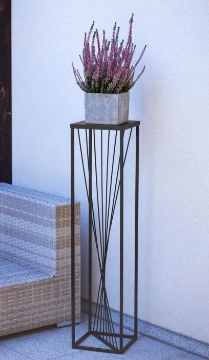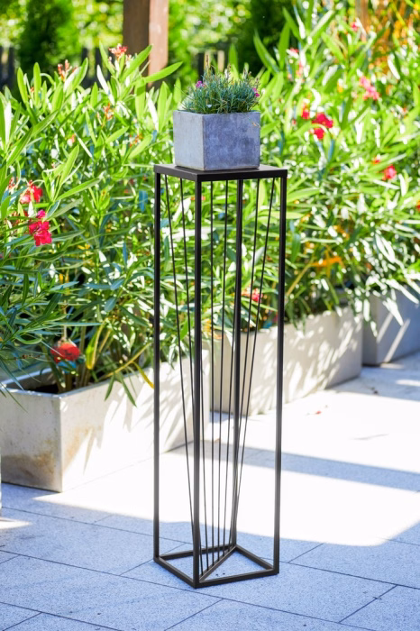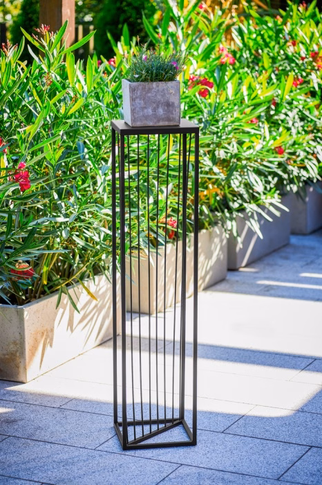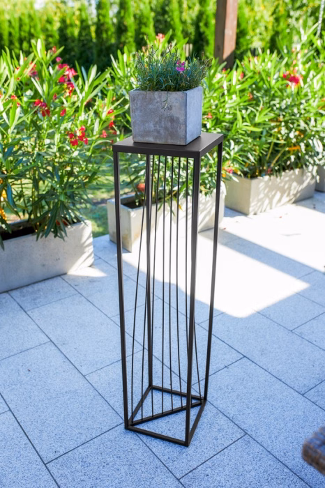 Interiérové dekorace / Květináče / Velké květináče - Kovový záhon. Dekorativní stojan na rostliny. Podstavec - 100 cm. Prezentujte svůj interiér a zahradu moderním způsobem s naším 100 cm vysokým záhonem s elegantními kovovými ozdobnými dráty. Je to nejen praktický dekorativní prvek, ale také stylový doplněk, který ozvláštní váš zelený prostor. Konstrukce záhonu je robustní a odolná, vyrobená z vysoce kvalitního kovu, který zaručuje dlouhodobou funkčnost a odolnost vůči povětrnostním vlivům. Záhon byl pečlivě navržen tak, aby poskytoval stabilitu a rovnováhu, což vám umožní bezpečně umístit vaše oblíbené rostliny nebo květiny. Dekorativní kovové dráty dodávají záhonu jedinečný vzhled a vytvářejí jemný a elegantní vzor. Tento detail dělá ze záhonu nejen praktickou nádobu na rostliny, ale také umělecký dekorativní prvek, který upoutá pozornost a dodá vaší zahradě charakter. Se svou výškou 100 cm je záhon ideální jak na terasu, tak na balkon a zahradu. Je to ideální způsob, jak zvýraznit krásu vašich květin a rostlin a zároveň vytvořit harmonickou kompozici s okolím. Dodejte své zahradě eleganci a styl s naším kovovým záhonem s ozdobnými dráty - funkčnost se zde snoubí s estetikou a vytváří dokonalé místo pro vyjádření vaší zahradnické vášně.