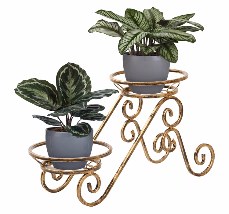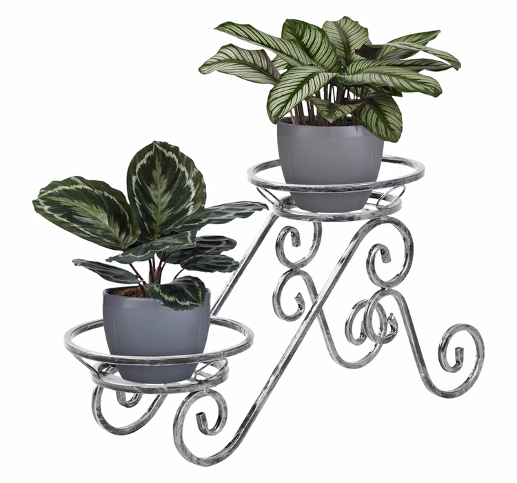 Interiérové dekorace / Květináče / Nízký květináč - Kovový záhon pro 2 květináče Květinový záhon na terasu nebo zahradu ze široké nabídky v obchodě Versanis zaujme svou odolností a elegantním vzhledem. Byl vyroben technikou kovotepectví (která je již léta módní a žádaná) v dílně polského výrobce. Tento stojan na květináče lze umístit venku před domem nebo uvnitř, například ve velkém obývacím pokoji. Skvěle doplní úpravu okolí a podtrhne jeho charakter, pokud zvolíme jeden z několika dostupných odstínů kovového rámu: černý, bílý, chromový, měděný. Moderní, odolný a mimořádně stabilní záhon s romantickými motivy jemných vlnek z oceli má dva praktické podstavce pro květináče. Má lehkou konstrukci, takže jej lze kamkoli přemístit po svých.