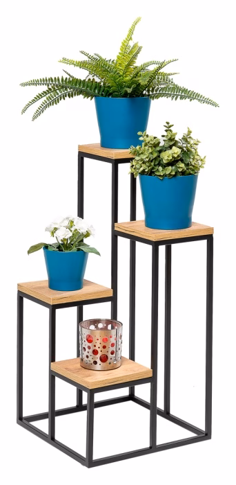 Interiérové dekorace / Květináče / Velké květináče - Kovový záhon, stojan na rostliny se čtyřmi dřevěnými vrcholy. Dodejte svému interiéru eleganci a styl s naším jedinečným kovovým stojanem na květiny se čtyřmi policemi. Tento designový prvek spojuje funkčnost, odolnost a estetiku, čímž vytváří ideální místo pro vystavení vašich oblíbených pokojových rostlin. Odolná kovová konstrukce: Náš stojan na květiny je vyroben z vysoce kvalitní práškově lakované oceli, která zajišťuje dlouhou životnost a odolnost proti korozi. Pevný rám zaručuje stabilitu i při maximálním zatížení. Poličky imitující dřevo: Čtyři poličky jsou vyrobeny z materiálu, který dokonale imituje přírodní dřevo. Povrch poliček je nejen esteticky příjemný, ale také snadno udržovatelný. Díky tomu se stojan harmonicky hodí do různých stylů interiérů, od skandinávského po industriální. Promyšlený design: Stojan na květiny má čtyři úrovně, což umožňuje efektní vystavení rostlin různé výšky. Poličky jsou uspořádány tak, aby poskytovaly dostatek prostoru mezi rostlinami, což podporuje jejich zdravý růst. Univerzální použití: Díky elegantnímu vzhledu a funkčnosti se stojan skvěle hodí jak do interiéru, tak i exteriéru. Můžete ho umístit v obývacím pokoji, na balkóně, terase nebo v zimní zahradě. Snadná montáž: Stojan na květiny je díky promyšlené konstrukci dodáván v celku, bez nutnosti montáže. Použití: Kovový stojan na květiny se čtyřmi policemi je ideálním řešením pro milovníky rostlin, kteří chtějí elegantně vystavit své zelené dekorace. Hodí se jak do obytných prostor, tak do komerčních prostor jako jsou kanceláře, kavárny nebo restaurace a dodává jim jedinečný charakter a přírodní kouzlo. Pokud hledáte rafinovaný a funkční stojan na květiny, náš kovový stojan se čtyřmi policemi imitujícími dřevo je vynikající volbou. Díky vysoce kvalitním materiálům, pečlivému zpracování a promyšlenému designu se stane nejen praktickým, ale i estetickým prvkem vašeho interiéru.