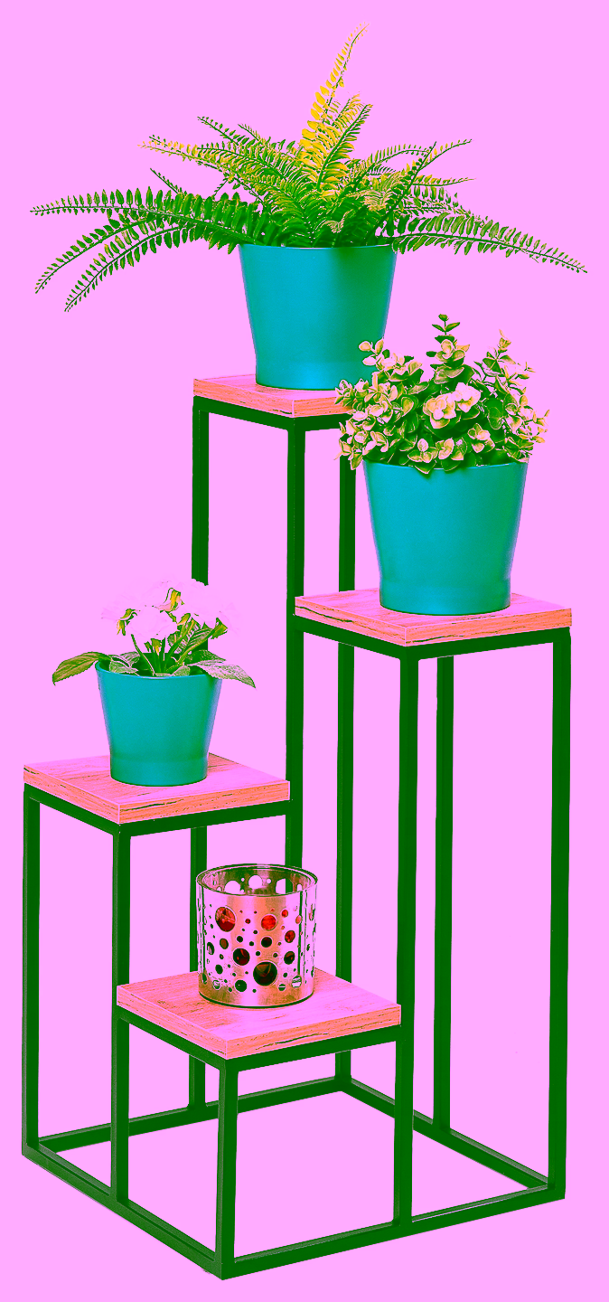 Interiérové dekorace / Květináče / Velké květináče - Kovový záhon, stojan na rostliny se čtyřmi dřevěnými vrcholy. Dodejte svému interiéru eleganci a styl s naším jedinečným kovovým stojanem na květiny se čtyřmi policemi. Tento designový prvek spojuje funkčnost, odolnost a estetiku, čímž vytváří ideální místo pro vystavení vašich oblíbených pokojových rostlin. Odolná kovová konstrukce: Náš stojan na květiny je vyroben z vysoce kvalitní práškově lakované oceli, která zajišťuje dlouhou životnost a odolnost proti korozi. Pevný rám zaručuje stabilitu i při maximálním zatížení. Poličky imitující dřevo: Čtyři poličky jsou vyrobeny z materiálu, který dokonale imituje přírodní dřevo. Povrch poliček je nejen esteticky příjemný, ale také snadno udržovatelný. Díky tomu se stojan harmonicky hodí do různých stylů interiérů, od skandinávského po industriální. Promyšlený design: Stojan na květiny má čtyři úrovně, což umožňuje efektní vystavení rostlin různé výšky. Poličky jsou uspořádány tak, aby poskytovaly dostatek prostoru mezi rostlinami, což podporuje jejich zdravý růst. Univerzální použití: Díky elegantnímu vzhledu a funkčnosti se stojan skvěle hodí jak do interiéru, tak i exteriéru. Můžete ho umístit v obývacím pokoji, na balkóně, terase nebo v zimní zahradě. Snadná montáž: Stojan na květiny je díky promyšlené konstrukci dodáván v celku, bez nutnosti montáže. Použití: Kovový stojan na květiny se čtyřmi policemi je ideálním řešením pro milovníky rostlin, kteří chtějí elegantně vystavit své zelené dekorace. Hodí se jak do obytných prostor, tak do komerčních prostor jako jsou kanceláře, kavárny nebo restaurace a dodává jim jedinečný charakter a přírodní kouzlo. Pokud hledáte rafinovaný a funkční stojan na květiny, náš kovový stojan se čtyřmi policemi imitujícími dřevo je vynikající volbou. Díky vysoce kvalitním materiálům, pečlivému zpracování a promyšlenému designu se stane nejen praktickým, ale i estetickým prvkem vašeho interiéru.