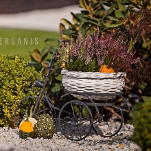 Interiérové dekorace / Květináče / Nízký květináč - Kovový záhonek na kolo malý Osvěžte ráz své zahrady nebo terasy důmyslným a stylovým záhonem ve tvaru retro jízdního kola. Záhon, který je k dostání v internetovém obchodě Versanis, je akcentem, který okouzlí vaše domácí i hosty. Kovotepectví, technika, kterou byl vyroben v Polsku, již několik let vévodí zahradnímu trendu. Kovový záhon zdobí romantické motivy kovaných ocelových prvků. Výrobek má dva podstavce pro květináče - v nich můžete prezentovat nejkrásnější exempláře ze své sbírky rostlin. Stabilní, trvanlivý a odolný záhonek lze skladovat i venku. Abyste záhon lépe sladili s okolím, můžete si vybrat z několika barevných variant.