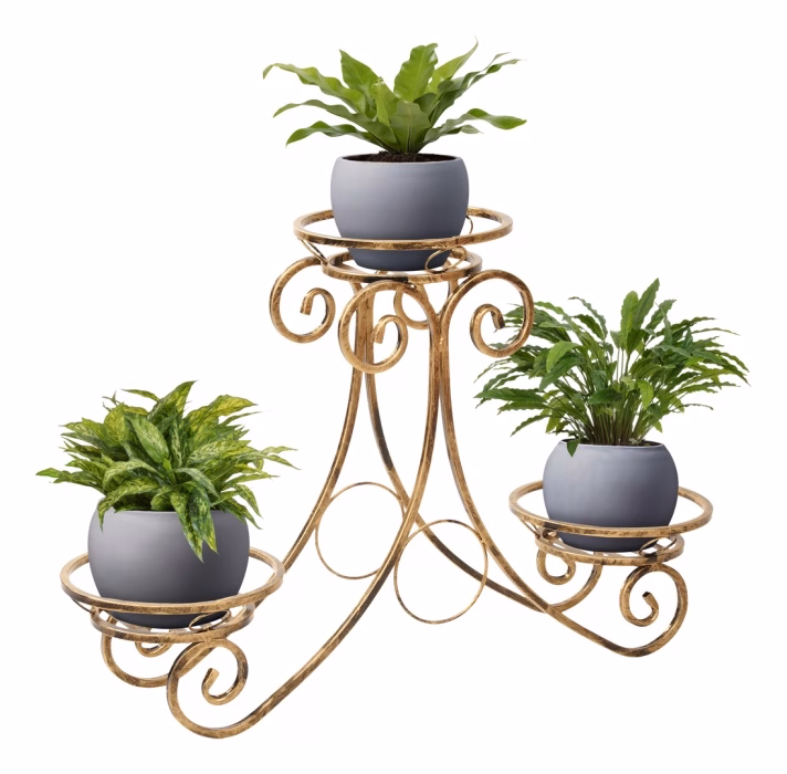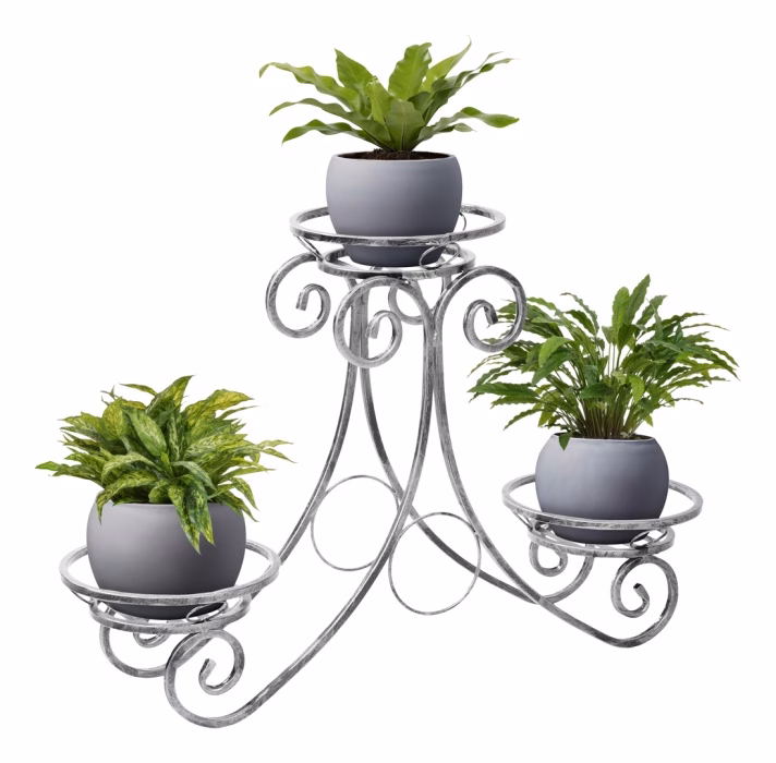 Interiérové dekorace / Květináče / Nízký květináč - Květinový záhon pro tři rostliny - Podium Kovový květinový záhon v nabídce obchodu Versanis je moderní, ale zároveň má romantického ducha a svým tvarem odkazuje na styl art deco. Pomůže zajímavě zařídit prostornou halu, obývací pokoj nebo zahradu. Tento stylový záhon byl vyroben metodou kovotepectví v dílně polského výrobce. Je trvanlivý a odolný vůči faktorům, jako je déšť nebo sluneční záření. Stačí si vybrat z několika barevných variant práškově lakovaného kovu, aby dokonale ladil s ostatními prvky. Trojitý záhon ve tvaru pódia je odolný a zároveň lehký a lze jej snadno přemisťovat podle požadavků nebo nápadů. Květináče jsou umístěny na praktických stojanech, na které se vejdou i větší rostliny.