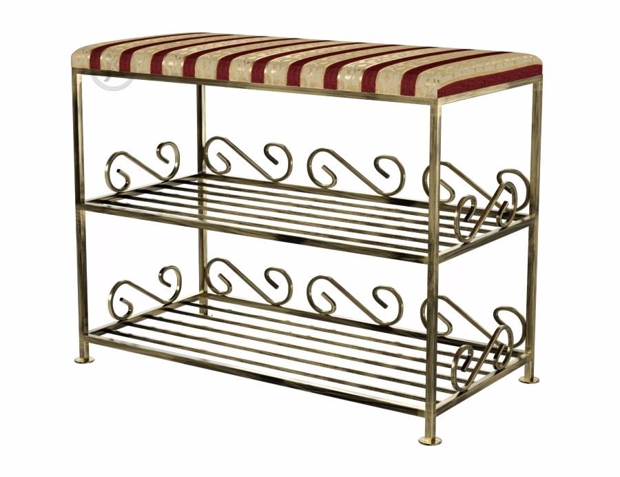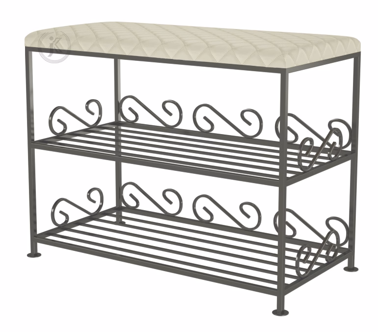 Nábytek / Pohovky a lavice / Lavice s botníkem - Lavice na boty se sedátkem Čalouněná podlouhlá police na boty se sedátkem je praktické a velmi elegantní řešení, které pomáhá udržovat pořádek a zároveň vnáší do interiéru elegantní atmosféru. Skvěle se hodí do úzkých chodeb a malých předsíní, ale bude působit efektně i jako doplněk designu velkých obývacích pokojů. Robustní konstrukce z práškově lakovaného kovu je zdobena ohýbanými tvary a působí mimořádně elegantně. Měkké čalouněné sedadlo je naopak potaženo látkou v jedné z několika módních barevných variant, z nichž si můžete vybrat. Dvě další police z robustního drátu se budou hodit na odkládání bot a doplňků. Botník se sedákem z internetového obchodu Versanis lze umístit do klasických i moderních místností.