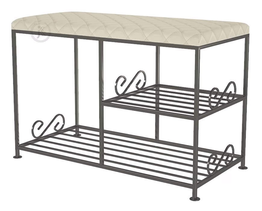 Nábytek / Pohovky a lavice / Lavice s botníkem - Police do předsíně se sedátkem. Čalouněný puf z nabídky obchodu Versanis je vysoce kvalitní kus nábytku polské výroby. Skvěle se hodí do předsíně, chodby, ale také do koupelny nebo jídelny. Může sloužit jako pohodlná opěrka nohou, praktické sedátko na obouvání nebo polička na ručníky. Stabilní rám z práškově lakovaného kovu je zdoben zaoblenými prvky a kombinován s měkkým sedákem čalouněným látkou na výběr z několika barevných variant. Praktické dvojité police, z nichž jedna je menší a oddělená od druhé, lze využít k uložení bot a krabice s pomůckami pro péči o obuv. Elegantní čalouněný puf doplní stylizovaný interiér, ale bude fungovat i jako akcent v moderním prostoru.