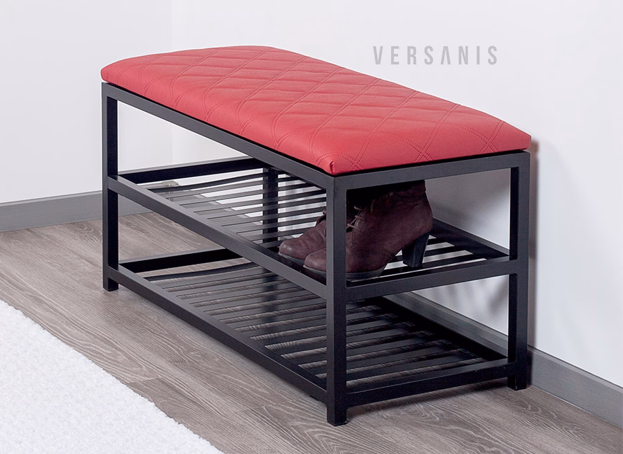 Nábytek / Pohovky a lavice / Lavice s botníkem - Police na boty se sedátkem - Loft 90 Zařiďte si prostor nápaditě a šetřete místem i časem! Vyberte si pro svou předsíň nebo chodbu pohodlný designový nábytek z obchodu Versanis. Sedačka v kombinaci se dvěma policemi představuje řešení 2 v 1, které ocení milovníci univerzálního designu - takového, který se hodí do domácností mnoha různých stylů. Kombinace kovových profilů a měkkého čalounění je stylová a nadčasová - kovové prvky nikdy nevyjdou z módy! Praktický kus nábytku se bude hodit jako sedátko na obouvání bot i jako šikovná, překvapivě prostorná polička na boty nebo na krabici s doplňky pro péči o obuv. Čalouněná police na boty se bude dobře vyjímat jako samostatný kus nábytku v předsíni nebo v sestavě se závěsnou skříní.