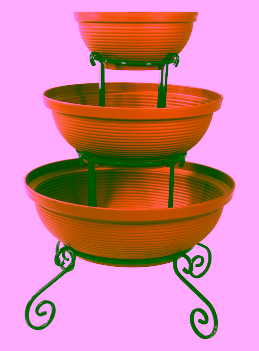 Zahrada a balkon / Zahradní nábytek / Květináče do zahrady - Sloupový držák na květiny - dekorativní - 3 misky Sníte o velkolepém vzhledu své zahrady nebo terasy? Vyberte si moderní záhon z internetového obchodu Versanis. Skládá se ze tří květináčů v černé nebo terakotové barvě, naskládaných od největšího po nejmenší na jednoduchém rámu, vyrobeném nadčasovou technikou kovotepectví. Tento stojan je stejně jako ostatní zahradní květináče z obchodu Versanis stabilní, trvanlivý a odolný proti dešti či poškrábání. Je mimořádně univerzální - hodí se k mnoha dalším prvkům prostředí. K tomu přispívá i možnost zvolit si barvu kovové konstrukce. Pro dosažení nejlepšího efektu se doporučuje do závěsných květináčů zasadit rostliny, které budou shora krásně kaskádovitě padat dolů a lahodit oku hostů i domácích.