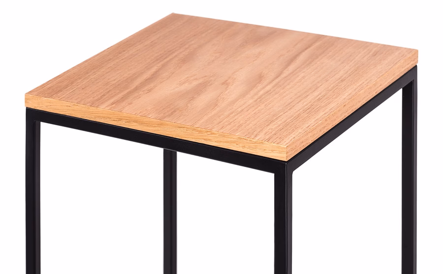 Výběrem tohoto konkrétního stojanu získáte kovovou konstukci v černé barvě, která má nahoře dřevěnou desku ve vámi zvolené barvě. Vyznačuje se jednoduchým designem a zároveň vynikající estetikou, proto je velmi populární, zejména v kombinaci s jiným nábytkem této značky.