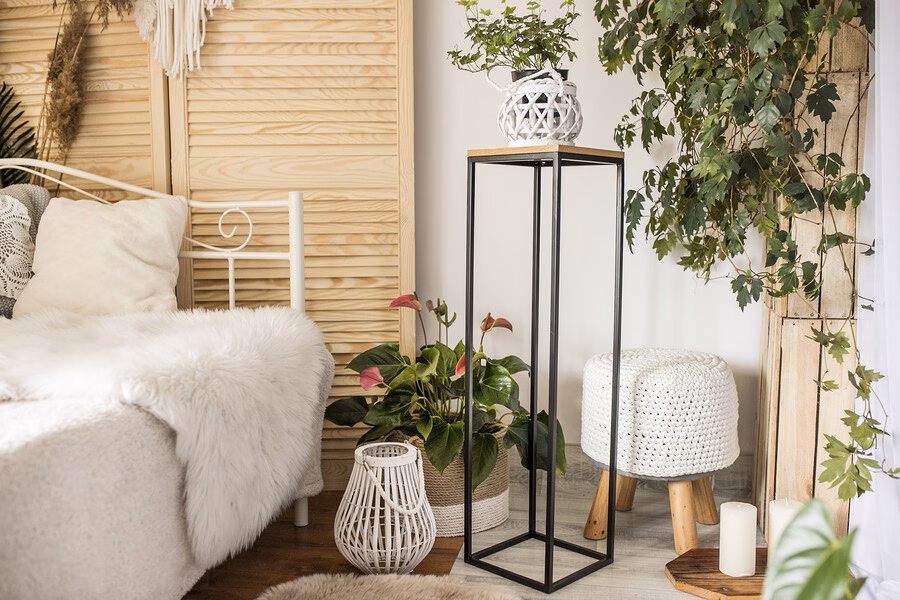 Tento stojan můžete opravdu umístit do jakéhokoli prostoru a to vše díky jeho univerzálnímu použití. Hodí se jako květinový stojan v obývacím pokoji, police na lampu v ložnici, zajímavý dekorativní prvek v kanceláři. Díky svému minimalismu dokonale zapadá do moderních místností zdobených v módním stylu, kde vládne především originální  design. Jsme přesvědčeni, že takový stojan je nejlepším doplňkem moderně zařízených míst mající atmosféru, kde záleží na nejmenších maličkostech.