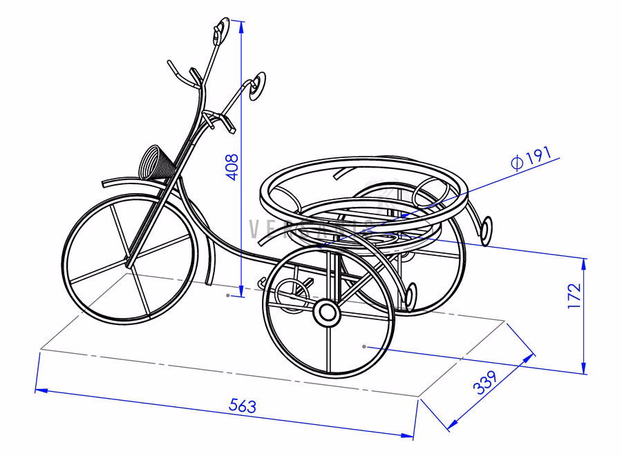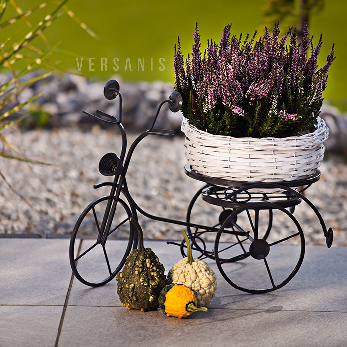 Interiérové dekorace / Květináče / Nízký květináč - Kovový záhonek na kolo malý Osvěžte ráz své zahrady nebo terasy důmyslným a stylovým záhonem ve tvaru retro jízdního kola. Záhon, který je k dostání v internetovém obchodě Versanis, je akcentem, který okouzlí vaše domácí i hosty. Kovotepectví, technika, kterou byl vyroben v Polsku, již několik let vévodí zahradnímu trendu. Kovový záhon zdobí romantické motivy kovaných ocelových prvků. Výrobek má dva podstavce pro květináče - v nich můžete prezentovat nejkrásnější exempláře ze své sbírky rostlin. Stabilní, trvanlivý a odolný záhonek lze skladovat i venku. Abyste záhon lépe sladili s okolím, můžete si vybrat z několika barevných variant.