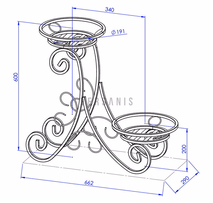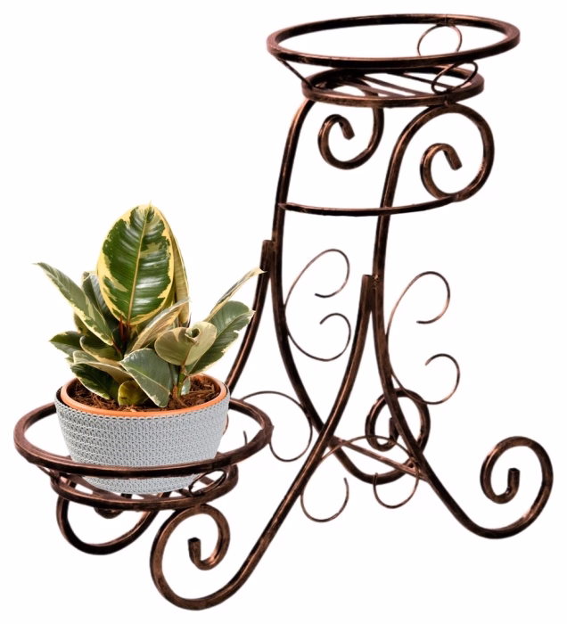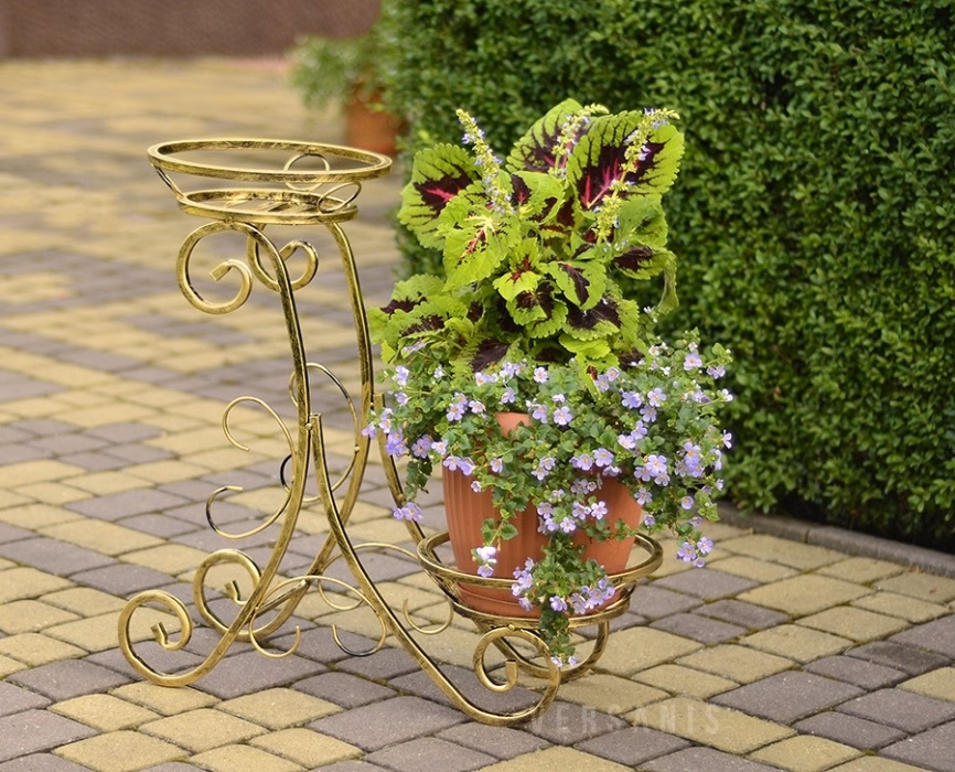 Interiérové dekorace / Květináče / Nízký květináč - Stojan na květiny. Kovový květinový záhon pro dva květináče Elegantní, stylový kovový květinový stojan, který je k dispozici v internetovém obchodě Versanis, má designovou formu, která mírně odkazuje na estetiku ve stylu art deco. Může být použit jako stojan na květináče na terase, ale také jako dekorace do bytu nebo kanceláře. Kovovýroba, technika, kterou vytvořil výrobce je efektivní a vždy módní. Již několik sezón patří k oblíbeným trendům interiérových stylistů. Odolná a stabilní struktura splní všechna očekávání náročných zákazníků. Produkt je k dispozici v několika barevných variantách, od bílé po matnou černou. Stojan se skládá ze dvou prostorných praktických stojanů na květináče s rostlinami, umístěných v různých výškách a zdobených secesními ocelovými vlnami.