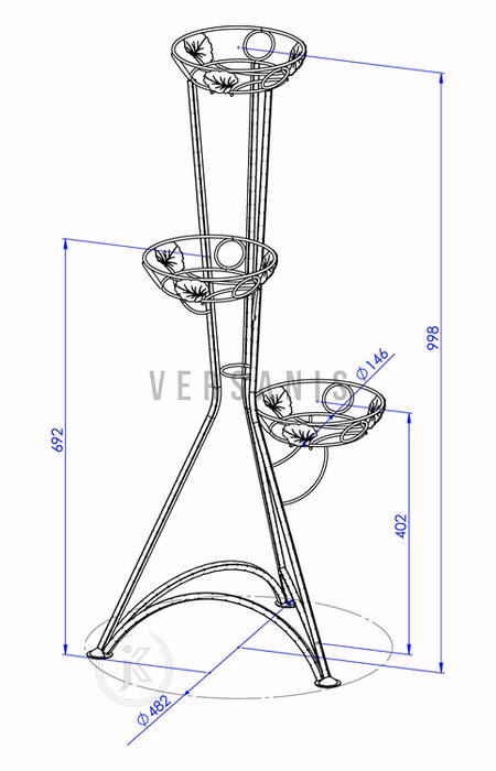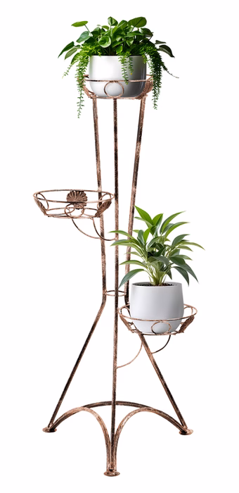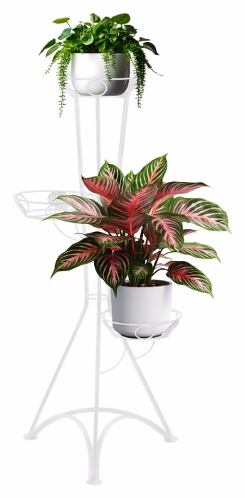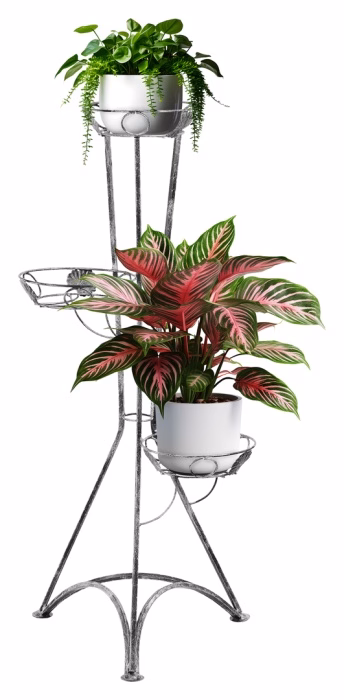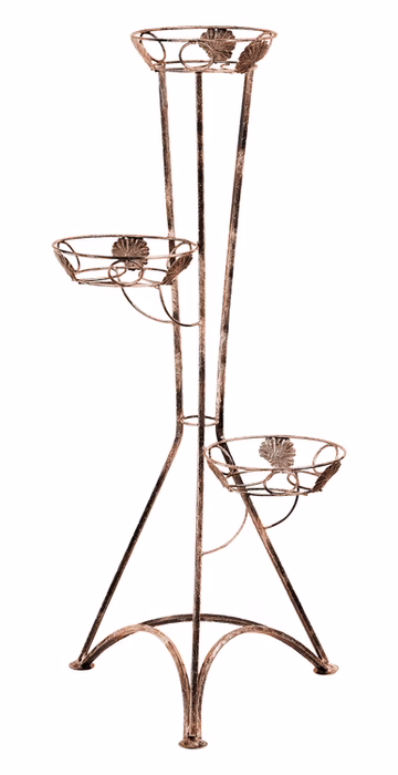 Interiérové dekorace / Květináče / Velké květináče - Stojan na 3 rostliny Tento malý dekorativní výrobek přídá jedinečnou atmosféru každému interiéru. Umožní Vám vytvořit krásné květinové kompozice, které ozdobí celý byt. Stojan na květiny se vyznačuje mimořádnými estetickými hodnotami, jeho konstrukce přitahuje pozornost a zaujme svou elegancí. Výrobek je vybaven speciálními místy na květináče. Platformy pro rostliny jsou vyrobeny z nejkvalitnějšího materiálu, díky tomu zaručují spolehlivost a odolnost. Tento stojan na květiny má elegantní dekorace, které ještě přidávají na jeho estetické hodnotě. Můžete si být jisti, že tento model vydrží zátěž, a květináče, bez ohledu na okolnosti, zůstanou stabilní na určeném místě. Celá konstrukce stojí na silných nohách, což zajišťuje plnou rovnováhu. Stojan na květiny najde své použití uvnitř i venku. Je také ideálně vhodný jako dekorace v předsíni a obývacím pokoji, stejně jako na balkóně nebo terase.