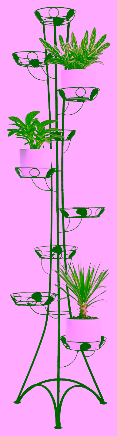 Interiérové dekorace / Květináče / Velké květináče - Stojan na květiny sloup 9 Představený výrobek je estetický záhon, který umožňuje vytvořit okouzlující vertikální kompozici rostlin. Díky svým velkým rozměrům maximálně vyplní jakýkoli prázdný prostor v místnosti. Konstrukce tohoto záhonu poskytuje prostor pro mnoho květináčů. Výrobek se vyznačuje jednoduchostí a klasičností, ale v kombinaci se závěsnými a barevnými rostlinami vypadá výjimečně. Umožňuje vnést do interiéru útulnou a bezstarostnou atmosféru. Záhon u objímek na květináče má krásný dekor, který dodává eleganci a styl nejen výrobku, ale i celé místnosti. Rostliny jsou jedním z oblíbených a nejčastěji volených dekorativních prvků a v kombinaci s univerzálním modelem květinového záhonu tvoří dokonale reprezentativní celek. Tento model umožňuje zajímavé asymetrické uspořádání květináčů.