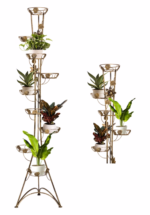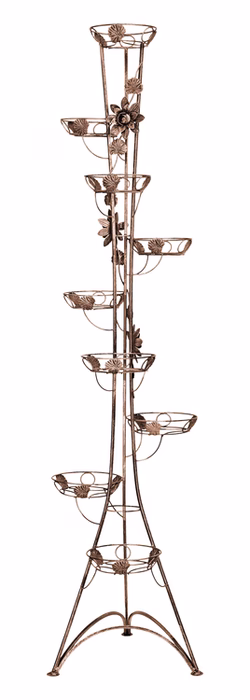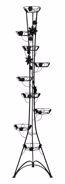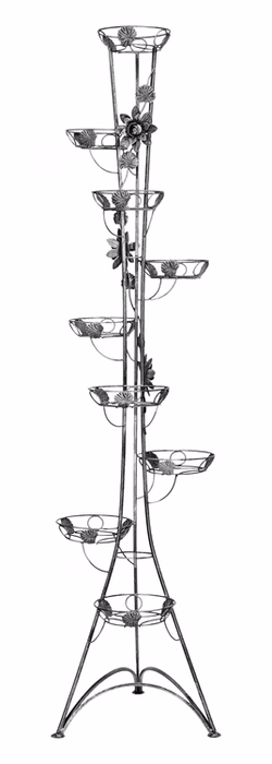 Interiérové dekorace / Květináče / Velké květináče - Vysoký záhon Sloup 9 s růží Vysoká sloupová postel z internetového obchodu Versanis je romantickým doplňkem, který na vaší terase vytvoří "atmosféru kouzelné zahrady". Zdobí ji romantické květinové motivy z kované oceli, listy a jemné vlnky a působí nesmírně elegantně. Vysoký podstavec se skládá až z devíti podpěr pro květináče. I přes svou výšku je více než stabilní a odolný. Pro dosažení nejlepšího efektu doporučujeme osadit květináče závěsnými rostlinami, které pak budou kaskádovitě padat dolů z horní části a lahodit oku hostů i domácích. Pro lepší sladění s okolím si můžete vybrat z několika barevných variant.