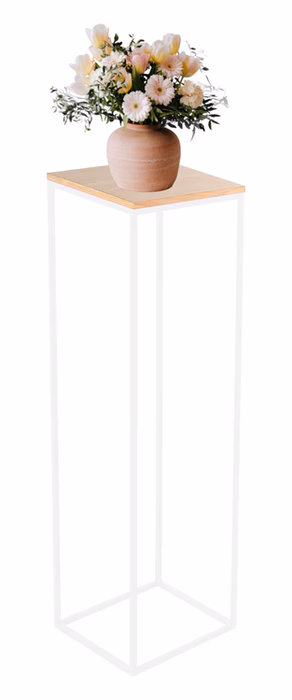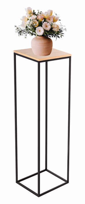 Interiérové dekorace / Stojany / Multifunkční stánky - Stojan na rostliny. Kovový vysoký květináč jednotlivý - 100 cm. Zřejmá elegance a funkčnost se spojují v tomto mimořádném stojanu na rostliny. Solidní konstrukce z kovu poskytuje nejen stabilitu, ale také odolnost, což ho činí ideální volbou pro výzdobu jak vnitřních, tak venkovních prostor. Jeho impozantní výška 100 cm mu dodává majestátní charakter a vyniká v každém prostředí. Tento jediný květináč se prezentuje mimořádně efektně a dodává eleganci a šarm každému prostoru. Vybavený solidní dřevěnou deskou tento stojan na rostliny nabízí vynikající plochu k vystavování květin, bylinek nebo malých keřů. Dřevo dodává přirozený šarm a teplo a skvěle ladí s kovovou konstrukcí. Učiňte tento vysoký kovový květináč s dřevěnou deskou středem vašeho zahradního designu nebo interiéru a přidejte nejen estetiku, ale také funkčnost a dekorativní možnosti.