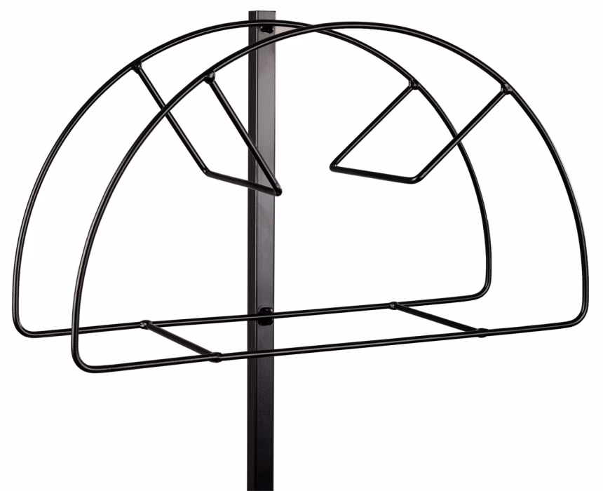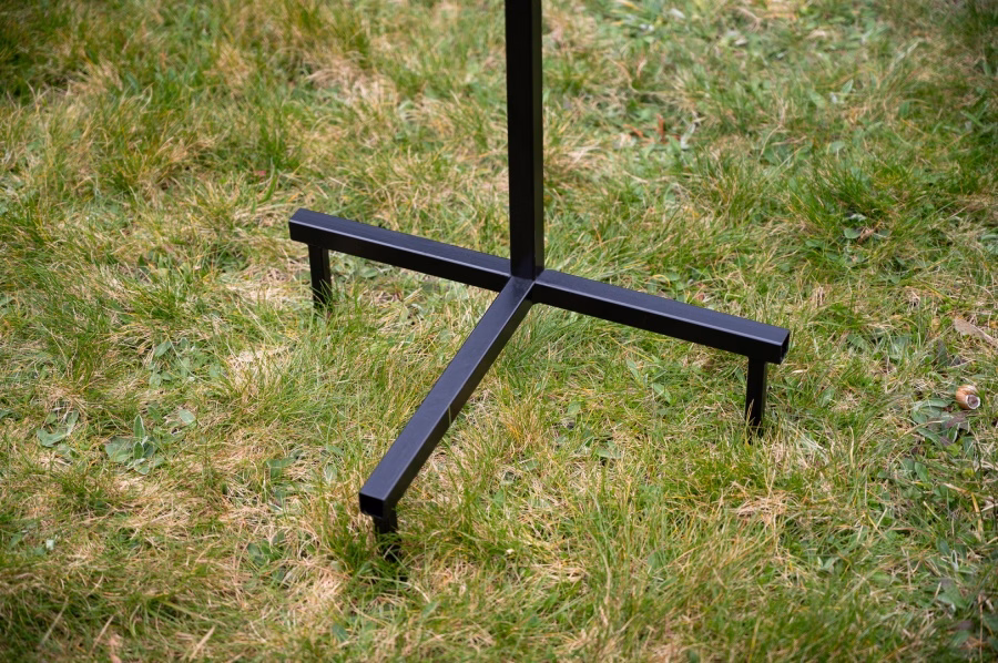 Držák je vyroben výhradně z kovu a je opatřen lakem vytvrzeným vysokou teplotou. Výrobek je k dispozici v černé barvě a díky vhodnému nátěru je odolný vůči povětrnostním podmínkám a korozi.
