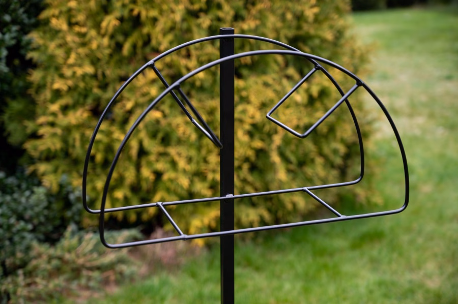 Stojanový držák na zahradní hadici, který vám umožní hadici řádně smotat, aniž byste se museli obávat jejího zlomení nebo zamotání. Představený stojan má kompaktní rozměry a možnost měnit jeho umístění zabořením nohou stojanu do země.