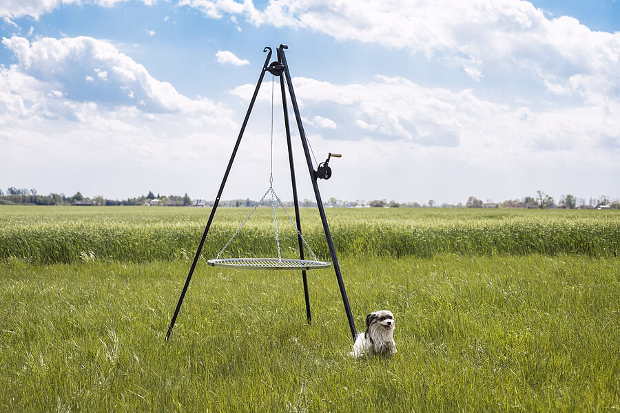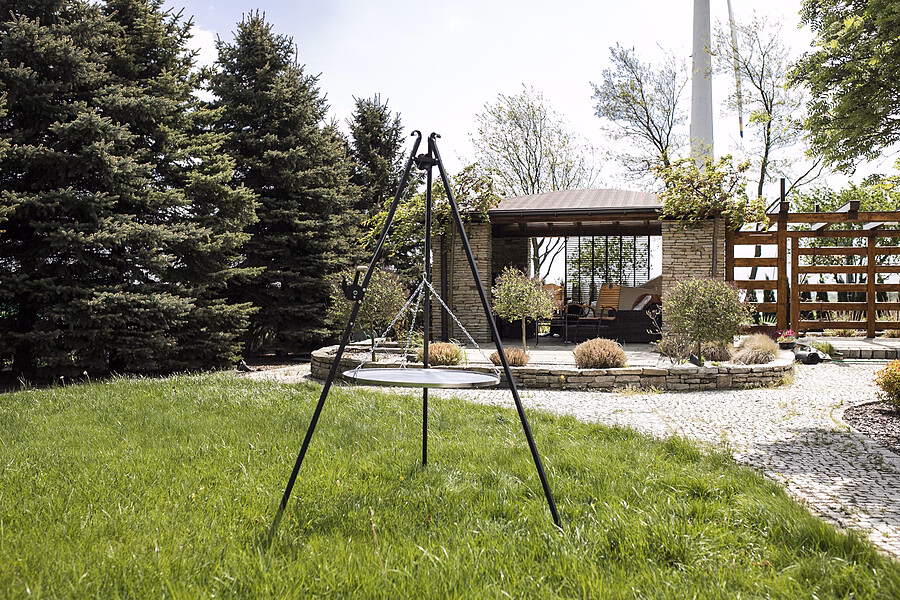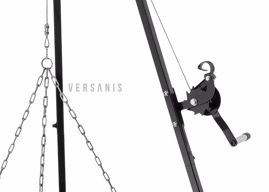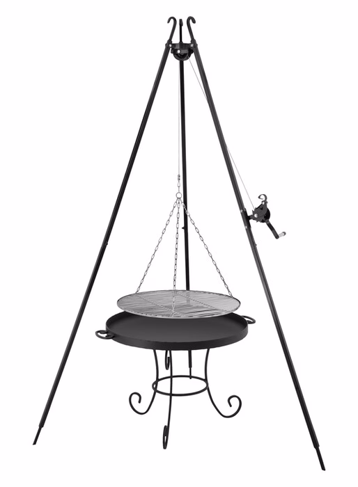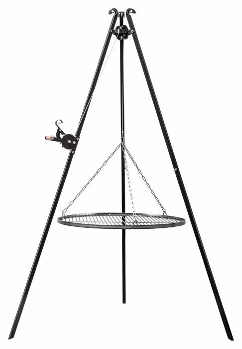 Zahrada a balkon / Grily / Grily trojnožky - Zahradní gril na trojnožce s navijákem a roštem Modernost a inovativní design v kombinaci s klasikou a nejjednoduššími, osvědčenými konstrukčními řešeními - to je to, co charakterizuje zahradní gril z nabídky internetového obchodu Versanis. Tři nohy zajišťují stabilitu a umožňují jeho umístění jak na terase, tak na nerovném terénu pozemku. Na rámu je namontován kotouč, který podpírá pozinkovaný chromovaný rošt. Elegantní a působivý zahradní gril s ohništěm (které lze zakoupit samostatně na Versanis.co.uk) se bude hodit každému, kdo si váží společně strávených chvil při dlouhých letních hostinách pod širým nebem. Jeho nekomplikovaný tvar umožňuje snadné čištění a skladování mimo sezónu. Vysoká kvalita výrobku vyrobeného v Polsku zaručuje dlouhou životnost a funkčnost, kterou ocení i ti nejnáročnější.